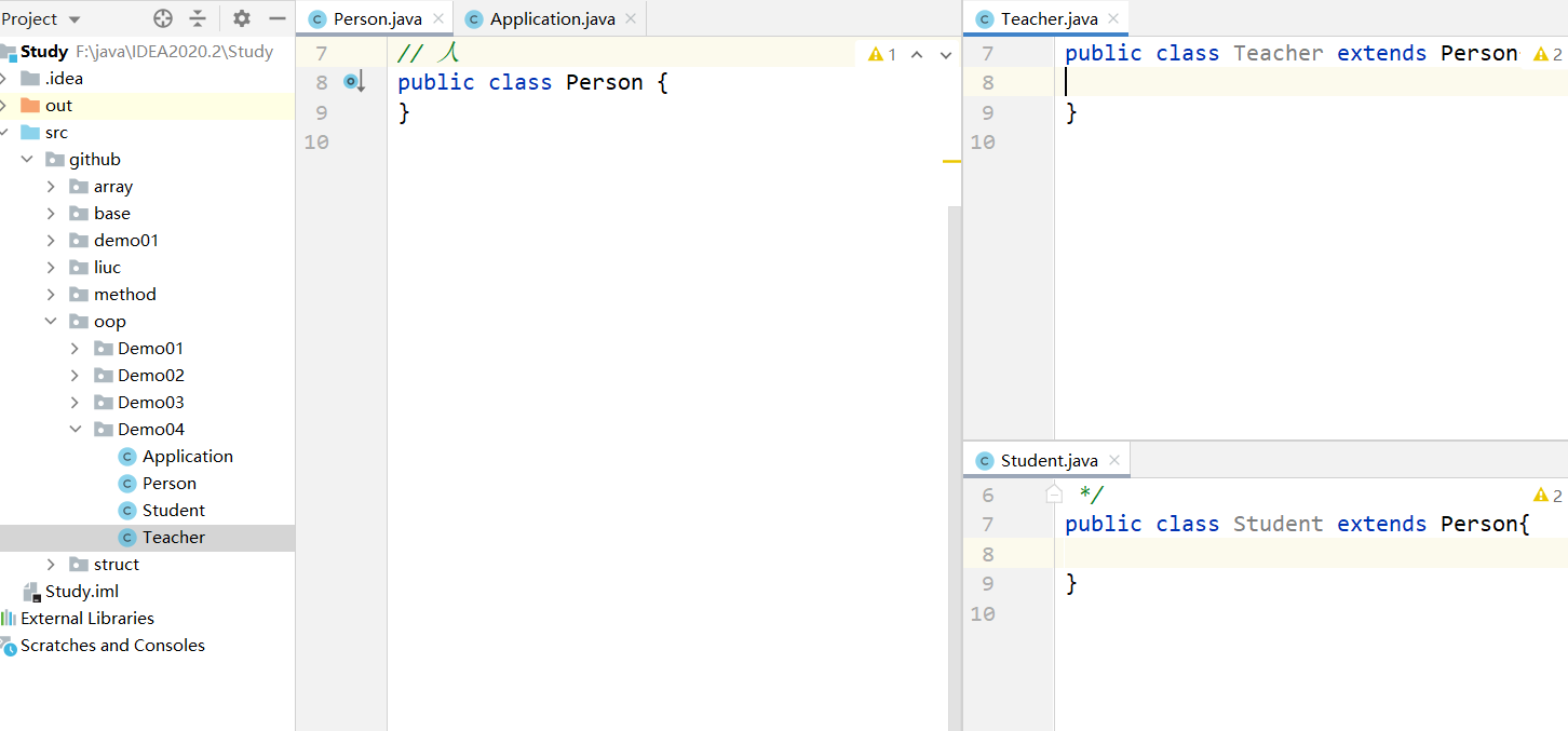- 修饰符:范围可以扩大但不能缩小: public>Protected>Default>private