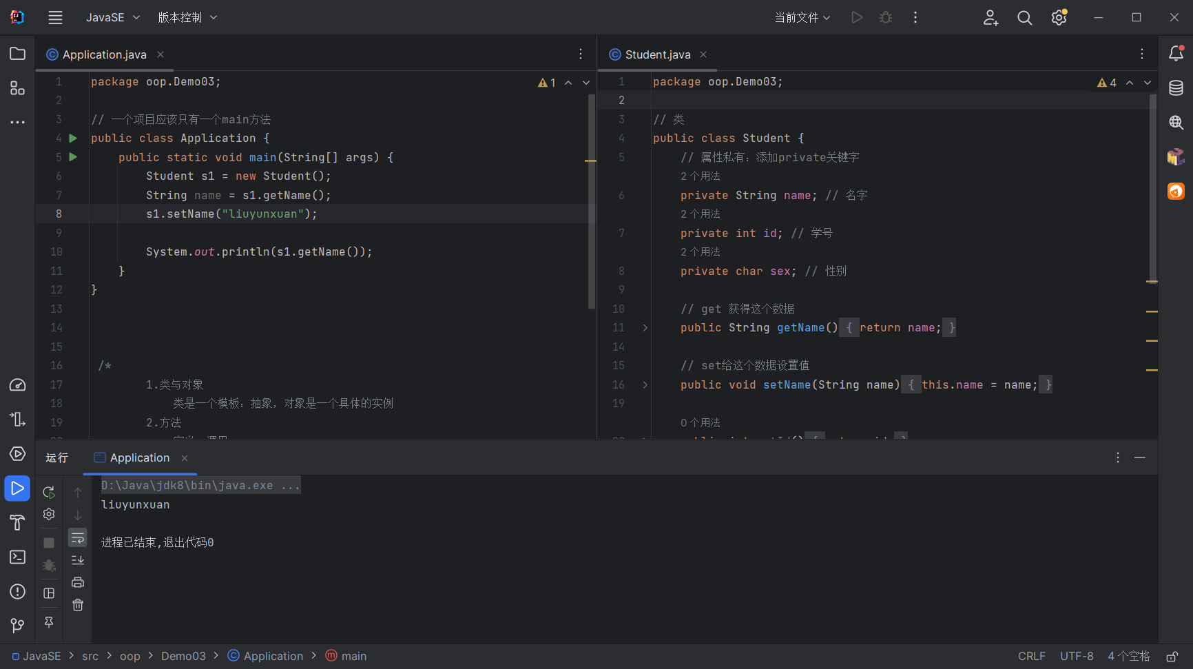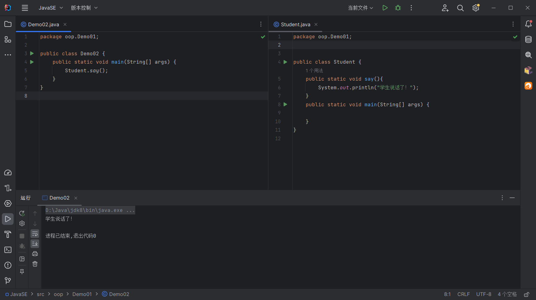 - ==声明类的关键字是 class,声明接口的关键字是 interface==。