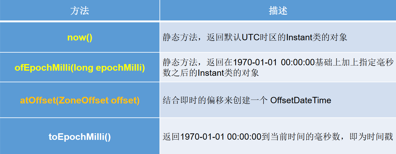 java.time包通过值类型Instant提供机器视图,不提供处理人类意义上的时间单位。Instant表示时间线上的一点,而不需要任何上下文信息,例如,时区。概念上讲,它只是简单的表示自1970年1月1日0时0分0秒(UTC)开始的秒数。因为java.time包是基于纳秒计算的,所以Instant的精度可以达到纳秒级。