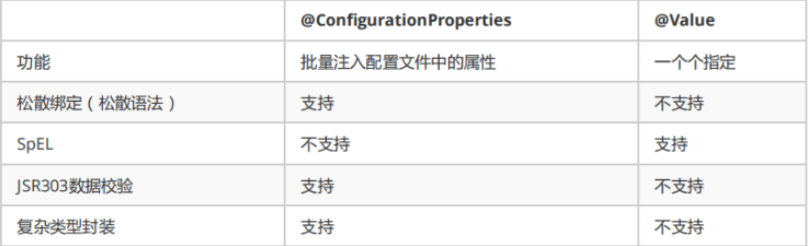 @Value这个使用起来并不友好!我们需要为每个属性单独注解赋值,比较麻烦;我们来看个功能对比图: